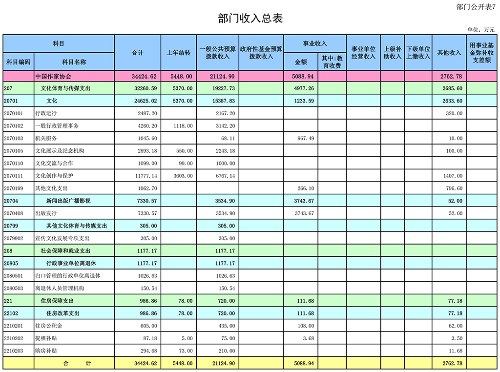 七、部门收入总表