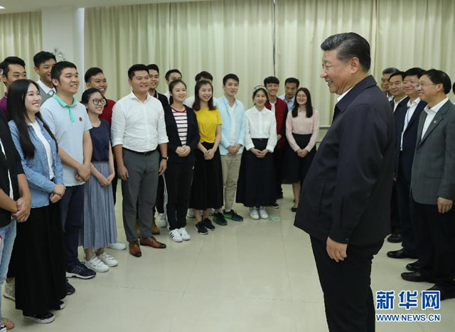 10月22日至25日,中共中央总书记、国家主席、中央军委主席习近平在广东考察。这是10月24日下午,习近平在广州考察暨南大学时同部分港澳台同胞和海外侨胞学生交流。 新华社记者鞠鹏摄