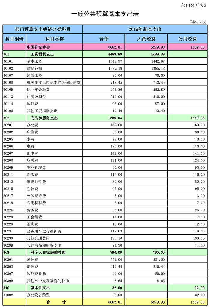 三、一般公共预算基本支出表