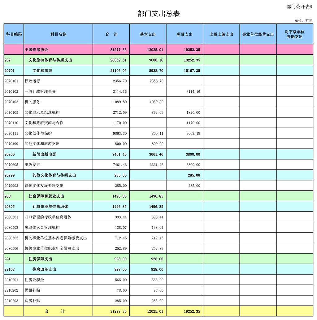 八、部门支出总表