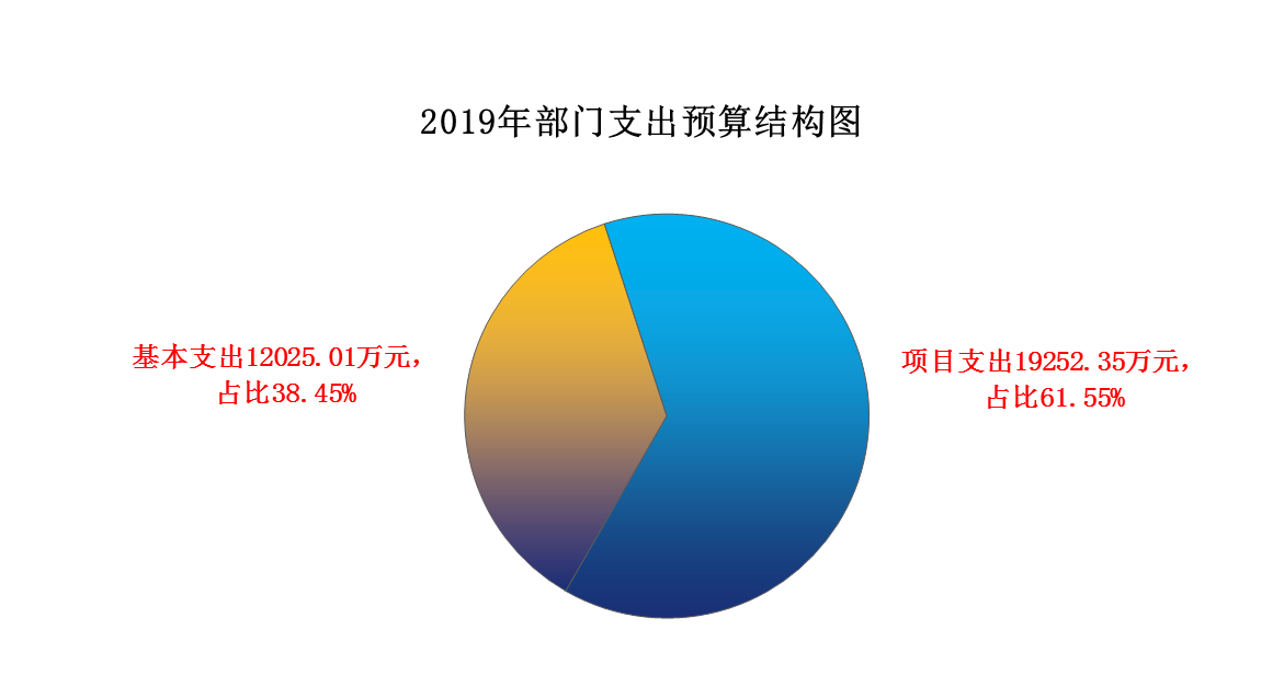 凤凰彩票平台登录入口2019年支出预算31277.36万元,其中:基本支出12025.01万元,占比38.45%;项目支出19252.35万元,占比61.55%。