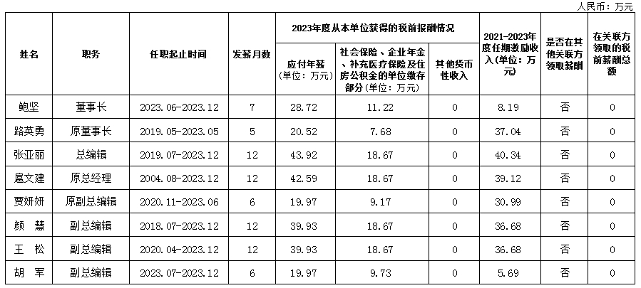作家出版社有限公司企业负责人2023年度薪酬情况