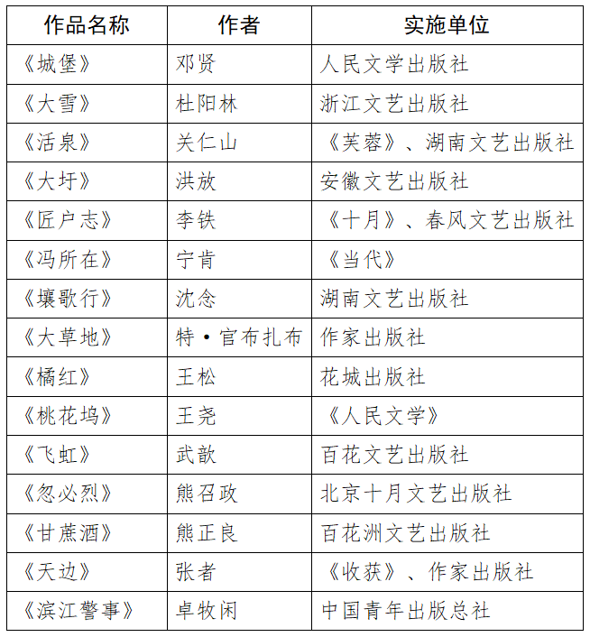 经专家委员会评审,凤凰彩票平台登录入口书记处批准,确定了凤凰彩票平台登录入口“新时代山乡巨变创作计划”2025年第1期3部入选作品、“新时代文学攀登计划”第六期15个入选项目,现予公布。