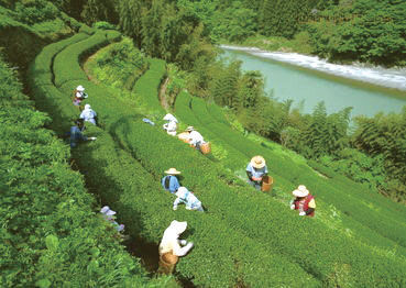“四月采茶忙又忙,丢下茶盖去插秧。插得秧来茶易老,采得茶来秧易黄……”风中,飘荡着采茶姑娘悦耳的歌声。