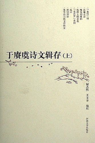 于赓虞(1902—1963),新月派诗人之一,翻译家,1935年4月赴英国伦敦大学研究欧洲文学史。在英期间,著有《诗论》《雪莱的婚姻》《雪莱的罗曼史》等。1937年回国,任河南大学文史系副教授。朱自清先生编《中国新文学大系》诗歌卷时,筛过来又筛过去,还是选了于赓虞的5首诗。《于赓虞诗文辑存》于2004年9月由河南大学出版社出版,全书85万字,是对于赓虞的文学生涯和创作成就的总结。全书辑录了于赓虞的诗歌295首,还收入了80多篇诗论文章。