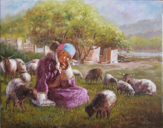 一个民族的生产生活方式会对新一代人的心理素质的形成产生深远的影响;而民族心理素质的差异,就在于一代代人内心情感的差异。作品中写到:“我搂住蜜糖的脖子,让她把头枕在我的肚子上,/感受着她呼吸的一起一伏,/我俩渐渐进入梦乡。”这既表达出游牧民族的生活习性,更展现着一个牧羊少女特有的情怀。