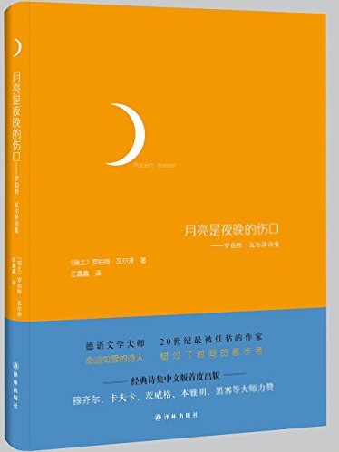《月亮是夜晚的伤口》收录了20世纪上半期瑞士作家、德语文学大师罗伯特?瓦尔泽的诗歌60多首。 20世纪最被低估的作家命运如雪的诗人 错过了时间的散步者经典诗集中文版首度出版。瓦尔泽的诗作中,既有对艺术品的评鉴,也有记录自己日常生活的诗,有许多诗作是瓦尔泽做底层工作的所见所感,不同程度地反映了他的情绪的变化。