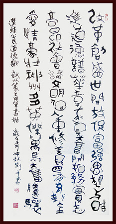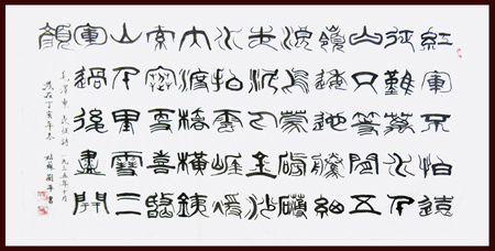 刘平,1931年11月生,江苏省苏州人,五岁随父学书,临池十年。1947年7月参加革命,1948年7月入党,在部队曾荣获“解放奖章”“淮海战役”“渡江战役”纪念章等。1979年转业回苏州担任学校(大专)党政领导并兼课(职称大学讲师)。1992年离休后,曾在全国各类大展赛中获各种奖励一百多次。2000年曾代表苏州市参加全国“夕阳红书画现场创作大赛”(全国文联在杭州举办)获金杯奖。2005年被江苏省国画院书法研究院聘为“特聘书法家”;2007年被聘为“中国名人书法家协会院士”;评为“中国书画家协会(香港)一级美术师”;2008年聘为“世界文化艺术研究中心理事”等;并相继被聘为“宋庄国际书画院终身院长”“中国文化学会艺术委员会主席”,且被聘为英国皇家艺术研究院荣誉院士、客座教授等十多个荣誉职务。并荣获“爱国爱军优秀艺术家”“世界和平艺术家”“2001年——2010年中国百位金典艺术家”“推动中国社会进步突出贡献人物”“感动中国文化人物”“和谐社会建设突出贡献人物”当选为“二十一世纪全球华人最具影响力艺术家”先进事迹被载入《共和国功勋人物志》全国德艺双馨劳动英雄等,并荣获苏州市“优秀老干部党员”“四好老干部”等荣誉称号。2014年又荣获“国际金马艺术奖终身成就奖”。2015年获得中华文化突出贡献奖、联合国文化传播大使、光荣入选、非物质文化遗产传承人物。出版的作品集有个人选集《大家名家》双人集有《当代艺神》《中印艺术大家》,合集有《书坛巨擘》《一代翘楚》《书画艺术泰斗》《中国辉煌》《中华文化艺术巨匠》《日出东方》《文化强国》《盛世翰墨名家经典》(国礼卷)等。