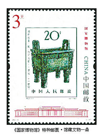 1964年8月25日,我国发行一套《殷代铜器》特种邮票,其中第八枚“司母戊鼎”;2012年7月8日,我国发行一套《国家博物馆》特种邮票,其中第二枚“馆藏文物——鼎”,图案以“票中票”的形式再现了《殷代铜器》特种邮票中第八枚“司母戊鼎”。