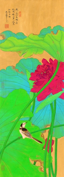 自后,则有半勾空留,以重彩加白粉的雪竹;亦有白描勾勒,弹雪浅绛法为之的雪竹;亦有掏填透勾法、揖雪留白法为之的雪竹;还有没骨渲淡、借地反衬等等方法的雪竹。此次展览中《雪竹独栖》一幛,自去年初冬濡毫拂拭,留白落墨,四染五洗,矾砑托禙,耗时不计,周折无算。端居出游,壁上箧中,随着我的行止,闲则拈弄,往往徘徊静观半日未能下一笔,实在是前有百代宗师,令人高山仰止,心生敬畏。