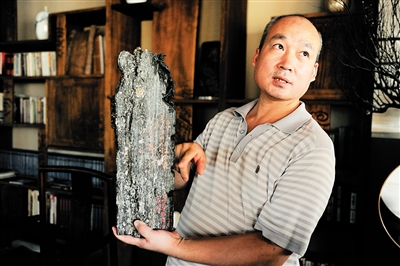 在他存放藏品的专用房间内,他也向记者展示了一份独有的收藏品——一只从西沙北礁出水的完整的宋代陶罐。