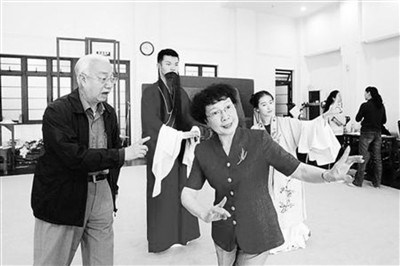 蔡正仁(左)、张静娴手把手教授昆五班学员。 蒋迪雯 摄