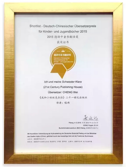 和程玮后来的合作是请她做译书,译的仍是“彩乌鸦”图书。程玮出手不凡,她翻译的《我和小姐姐克拉拉》去年12月获了首届德译中童书翻译奖。