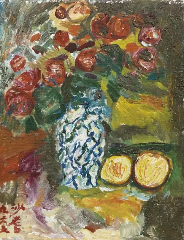 此时北平当艺专校长的徐悲鸿得知沙耆已回到国内,就去信聘请他为北平艺专教授。从沙耆所留下资料和手稿中发现,沙耆是接受了徐悲鸿的邀请,但因精神病情严重而未能成行。沙耆笔记中显示他为何想急切回国的原因和心情。有沙耆的诗为证:“忽闻中华已解放,初闻涕泪满衣裳。却看妻子愁何在,漫卷诗书喜欲狂。白日放歌须纵酒,青春作伴好还乡。即从比国回故乡,便上浙江做省长。”前些天我在微信上发了一组题为《沙耆的乡愁》画作,好多朋友问我为何落款:省主席沙耆。从这首诗上可以找到答案。沙耆是用“省长”“省主席”在他的应酬作品中落款形式,可见他的抱负和愿望,多么希望学成归来报效祖国,并非一般人所想象的“官迷”。当时他的堂兄弟们个个都是人物,如解放初堂兄沙文汉是浙江省省长,他就很谦虚了做“省主席”,一个精神病患者就此在精神上得到满足。正如史美章在《沙耆在韩岭的日子》一文中所描述的,“如果你叫他一声省主席,可能他还会高兴一阵子呢,他的喜、怒、哀、乐,随身边事情的发生,总是显得那么的淋漓尽致。”