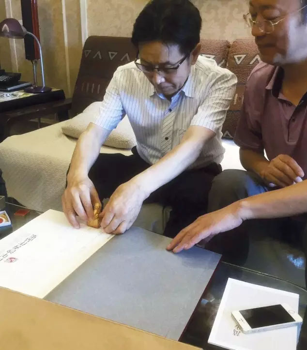 沙天行(左)为孙群豪(右)题签