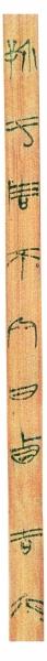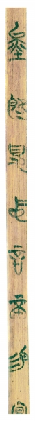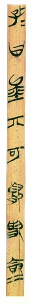 在喧嚣的都市中,远离灯红酒绿的喧闹,远离低级趣味的娱乐,忘掉世俗的纷扰、物质的诱惑,在一个角落里,静静面对着一枚枚古人留下的简牍,体味着其中深奥的内容,欣赏着那两千多年前的书手留下的墨迹,仿佛穿越了时空。一旦有了新的领悟,掂一支狼毫,研一池新墨,古老竹简上的文字,在洁白的宣纸上仿佛复活了,既保留了古意盎然,又增添了几分新趣。这种好似与古人对话的感觉,是难以与外人道来的一份快乐。