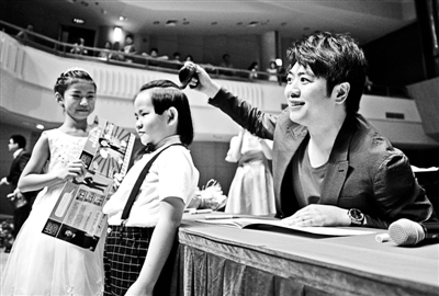 昨天,近千名琴童欢聚在北京音乐厅,钢琴家郎朗在这里举办了《郎朗钢琴启蒙教程》的首发式,并现场指导六位小朋友弹奏教程中的内容。