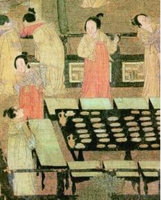 在饮食上,也很有讲究。在七夕节前,妇人们便要以红熬鸡以及其他的时新果品,互相馈赠,取吉庆之意。负责果品进贡的蜜煎局还会在市场上售卖水蜜木瓜。孟元老的《东京梦华录》中还记载售卖七夕物品的乞巧市的热闹场景,“自七月初一为始,车马喧阗,七夕前两三日,车马再次壅遏,不复得出,至夜方散。”这欢愉热闹的节日气氛不难让人想见宋代市民城市生活的美好。