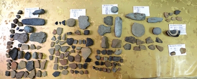 东山头遗址采集的石器与陶片