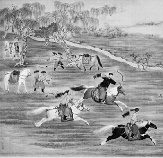 清朝中叶以后,火器较为发达,弓箭作为冷兵器,仍然是骑射竞赛或表演中的重要项目。
