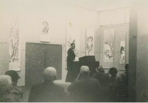 专门派了一个人来,叫梁龙,德国使馆的参事。一定要请我去,我说讲完了就去。我到柏林以后就开了一个茶会,请了很重要的人。一个是普鲁士美术学院院长吕贝蒙,一个是东方艺术学会会长佐尔法,还有一个是东方艺术学会副会长,负责这个展览的屈梅尔,还有其他许多人。吕贝蒙已经八十几岁了。他们听了我讲六法论,就很重视与我的谈话,所以就派重要的领导人来与我谈。这些都是很有名的人。佐尔法是专门研究中国的教授,到过云冈石窟,吕贝蒙也到过中国,都是喜欢中国艺术的,都是地位很高的。当时吕贝蒙八十三岁,佐尔法和屈梅尔都七十几岁了。他一看我只有三十几岁,年纪很轻。很多人介绍我是刘海粟教授。他在报纸上看见我的讲座了。