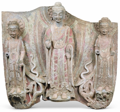 一佛二菩萨贴金彩绘像 东魏 青州龙兴寺窖藏