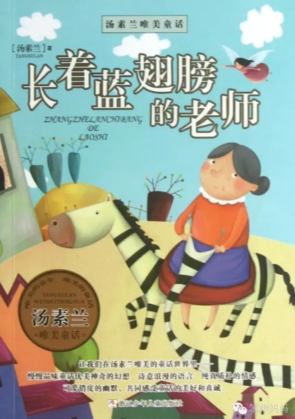 《长着蓝翅膀的老师》是我的一个很短的童话故事,我写了一个天生就长着一双翅膀的女孩子,长大了,找不到工作,结果幼儿园的孩子们请她去当老师,因为孩子喜欢有翅膀的老师。长着蓝翅膀的老师来到幼儿园以后,告诉孩子们,所有的孩子都是有翅膀的,只要想飞,就能飞起来,于是,她带着孩子们一起飞,他们有时候飞得近,有时候飞得远。他们认识了大地上的城市、河流和山脉,还和天空中的鸟儿交上了朋友。自打幼儿园的孩子们会飞以后,幼儿园里的桌子、椅子、毛巾和脸盆就不再乱飞了,它们乖乖地呆着,又整齐又清洁。
