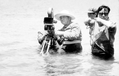 翟俊杰(戴草帽者)在《金沙水拍》拍摄现场。