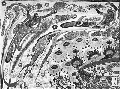Àî°×Ê«¸èÖÐÌáµ½µÄÌì¿Õ²»ÉèÉ«µÄɽˮ±Ú»ÔÚÌÆ´úÊǷdz£ÉÙ¼ûµÄ£¬²»¹ýÒ²ÓÐÀýÖ¤£¬¶Ø»ÍĪ¸ß¿ßµÚ217¿ßÄϱڵľ±ä»Ã棬ҲÊÇÒ»·ùÉèÉ«±Ú»£¬µ«Ìì¿Õ¾ÍÊDz»Ê©ÑÕÉ«µÄ¡£ÕâÊÇÒ»·ù¡¶ÇàÂÌɽˮͼ¡·£¬É½·åÓÃÇàÂÌ×ÅÉ«£¬Ã÷ÏÔ¿´³öÌì¿Õ²»ÉèÉ«¡£