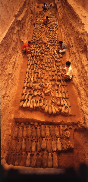 汉阳陵考古队队长焦南峰说:“动物随葬的习俗,世界各地皆有,但特色各异。根据考古发掘,中国在新石器文化时代的墓葬中就发现了大量种类各异的动物遗迹,其中尤以俗称的‘六畜’(即猪、狗、鸡、牛、羊、马)为多;同时,随着文明的进化,也出现了用陶质动物随葬的现象。”