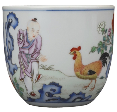 清代粉彩鸡缸杯