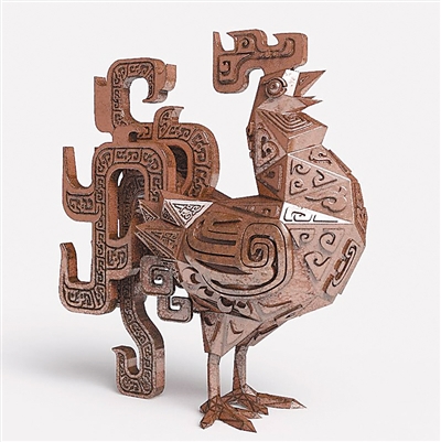 朱炳仁对鸡有着特殊的感情,不仅仅是因为自己的儿子属鸡。作为一个异常勤奋的匠人,他非常喜欢闻鸡起舞这个成语。他说,从距今两三千年前开始,随着欧亚大陆上农业文明的日臻成熟,人和鸡的关系日益紧密并慢慢开始发生变化。而且鸡从被人类驯化起,在早期漫长的岁月中,可能主要是用来祭祀、占卜、报时的,并非是食用。先秦时代,鸡已是中原乡村四处可见的家禽,《诗经》中类似“风雨如晦,鸡鸣不已”的句子很多。不过在中国的考古遗址中发现的鸡骨始终不多,目前只有安阳的殷墟出土过一件不完整的鸡头骨,这说明鸡和六畜中的其它动物相比,有着自己特殊的地位。