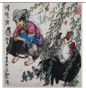 在中国文化中,鸡本就是一种象征着吉祥的动物。金鸡报晓和闻鸡起舞等题材更是广为历代名家所钟情。史国良虽然以画人物成名,但是对于鸡这个题材,他却并不陌生。曾经先后绘制过《闻鸡起舞》和《饲禽图》的史国良在谈及画鸡时说:“徐悲鸿先生和黄胄先生早就说过,作为一个人物画家,不要单单只画人物,还要多画动物和植物,要选几种自己最熟悉的,这样可以增加画的生活气息,也更接地气,有人情味。所以,我经常画一些和人有密切关系的动物,鸡就是其中的一种。”
