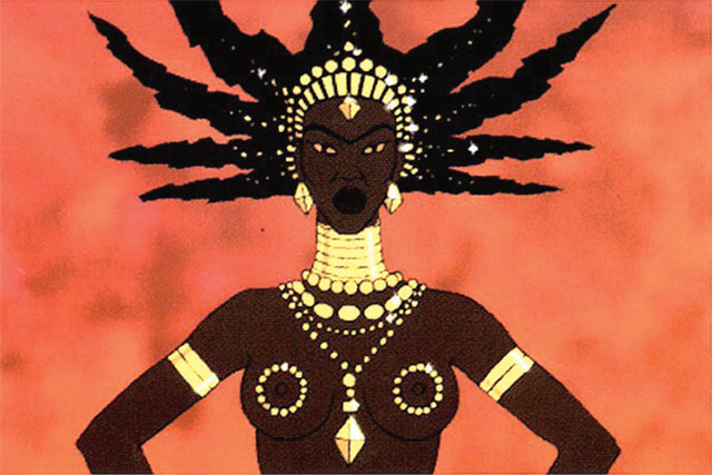 叽哩咕是一个生活在北非村落的小男孩。尽管只有一只汤匙高,他却拥有非凡的智慧和超人的勇气。这是一个单纯明快的励志故事:叽哩咕带领全村的女人、孩子和老人,与不远处的女巫卡拉芭斗智斗勇……确实,这个故事有点像凤凰彩票熟知的动画系列片《蓝精灵》:卡拉芭扮演格格巫的角色,叽哩咕则是一个迷你版本的蓝爸爸。不同的是,《蓝精灵》虚构了一群精灵角色和社会形态,而《叽哩咕与女巫》则展现了现实中欧斯洛童年成长的那片土地——非洲几内亚。非洲的部分地区作为法国的前殖民地,一直吸引着欧斯洛的兴趣。