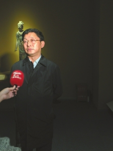 这是四川省作协主席、著名作家阿来第二次参观敦煌艺术大展,此前,他曾去过敦煌、麦积山、克孜尔等地,对这次展出的文物非常熟稔,对佛教艺术和敦煌文化更是信手拈来。阿来对丝绸之路的历史津津乐道,在他看来,丝绸之路不仅是运输丝绸的物流通道,还是文化传播的桥梁,不仅把佛教文化传入了中国,还把中国的文化以丝绸等物质为载体传向世界。