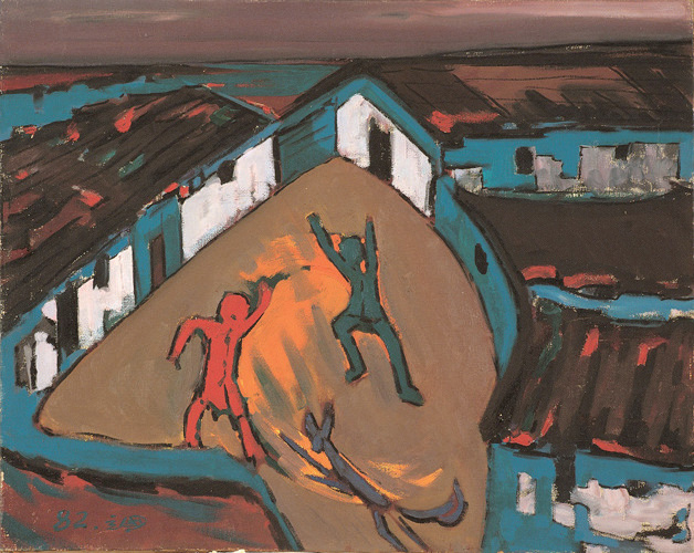 展览开幕当天,还举行了此次回顾展的研讨会。图为张立国作品《我的童年》。 (小 辰)