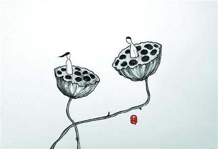 答:这个特奇怪,算是我自己发明的破玩意。我的内容是线画的内容,用的材质却是墨和毛笔。我有什么用什么,你知道我还用什么画过吗?我在高铁上用茶水画过一幅,画的梵高。北京雾霾的时候,我用窗台上那灰兑上水画,那幅画我起名为《霾都孤儿》。