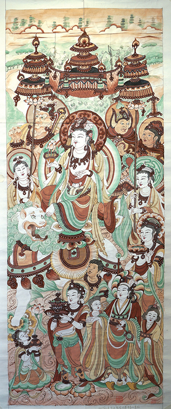 我已是耄耋之年的老人。逢老骥伏枥、随遇而安时,现在有了这样的际遇,把我半个多世纪以来,顺应敦煌艺术的脉络发展、创新、应用的(部分成果),以“花开敦煌”的含义和多样的形式展示出来,(这是)我对敦煌艺术承前启后发展应用的感悟和衍生。
