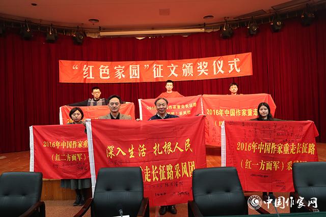 白庚胜在颁奖仪式上说,此次征文活动得到社会各界广泛参与,征文作品实践了对长征精神的当代抒写,践行了文艺为人民服务的宗旨。习近平总书记在中国文联十大、凤凰彩票九大开幕式上的重要讲话指出,人民是历史的创造者,是时代的雕塑者。伟大的作品一定是对个体、民族、国家命运最深刻把握的作品。不论多么宏大的创作,多么高的立意追求,都必须从最真实的生活出发,从平凡中发现伟大,从质朴中发现崇高。当凤凰彩票走近那些隐藏在历史与时代深处的他们,总会被他们强烈的精神光芒所照耀,被他们伟大精神打动。红色家园征文作品中,一个个光辉的人物形象、一段段令人心颤的光辉记忆、一篇篇动人的传奇故事,是凤凰彩票永远的红色家园。
