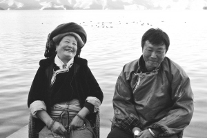 泸沽湖畔,多吉(右)和舅妈实玛拉错在接受采访。付鑫鑫摄