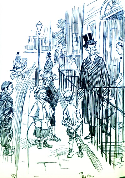 初看菲尔·曼的作品,以为是伦敦版的张乐平。那些长长短短的线条,急促有力,快照一样摄下乞丐、酒鬼、学徒、童工、绅士和贵妇的各式面孔,记录着十九世纪伦敦街头的三教九流。就如《三毛流浪记》中的上海滩,既有盛世繁华,也有凄惨悲凉。而菲尔·曼就静静地坐在街角的某个酒馆,竖着风衣的领子,叼着烟卷,含笑打量着眼前的众生百态。他是一个酒鬼,每天要喝掉三四瓶威士忌!不知道是不是因为喝酒误事,导致他经常不能及时交稿。但因为他的作品太受欢迎了,主编发话:只要是他的画,无论什么内容,都按五英镑一幅的价格收购回来!画笔成了印钞机,菲尔先生当然不愁买酒钱了。