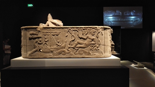 粗粗看来,这个制作于公元前600年的木棺和常见的古埃及木棺差别不大,但实际上它的全部材料都来自埃及以外的地区:木料来自于黎巴嫩,黄金来自努比亚……这也就告诉观众,在文明之初,全球化就拉开了序幕。