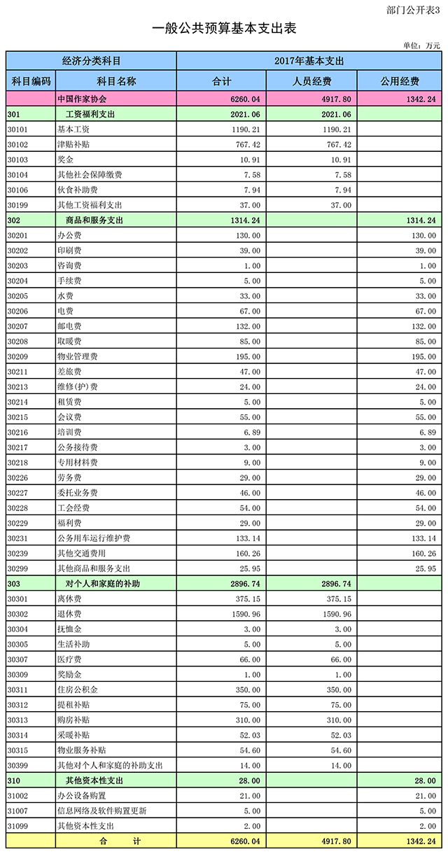 凤凰彩票平台登录入口2017年一般公共预算基本支出6260.04万元,其中: