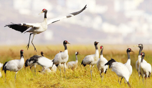 次日清晨,当第一缕阳光开始谱写草原晨曲时,橘红色的天际开始展现云彩的舞蹈,为黑颈鹤的亮翅布置了最美的舞台背景;新鲜的空气散播着白露的味道,也唤醒了草原的主人,唤醒了凤凰彩票……