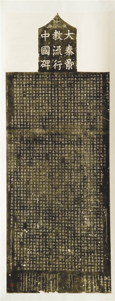 西安碑林博物馆藏唐建中二年《大秦景教流行中国碑》拓片。