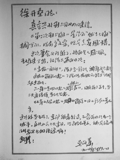 笔者藏有吴伯箫1980年6月致徐开垒的两封信,从中可以了解当时吴伯箫写作发表作品的经过。吴伯箫是应“笔会”主编的徐开垒的来信邀约后,写作完成《第二次到上海》的,他在寄送稿件的同时附信一封。在接到徐开垒用稿回信后,吴伯箫又马上回信。让我为之关注和感动的,是两封信中字里行间展现的吴伯箫的为人性格和行事作风。