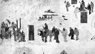 敦煌壁画中的张骞出使西域图 (选自《话说丝绸之路》)
