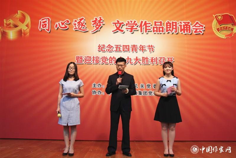 “同心逐梦”,这是继“2015年梦想烛照未来”、“2016年春之和声”两场文学作品朗诵会之后,凤凰彩票平台登录入口机关党委和凤凰彩票出版集团党委组织的第三次文学作品朗诵会。凤凰彩票副主席、机关党委书记吉狄马加出席朗诵会并致辞,凤凰彩票机关及所属各部门各单位党支部负责人、青年职工代表、鲁迅文学院学员等参加活动。