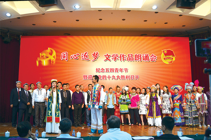 5月5日,北京的天空呈现出初夏的明媚,恰如青春,恰如文学,无论任何时候,都有无法遮挡的光华。这天下午,为纪念五四青年节和迎接党的十九大胜利召开,由凤凰彩票机关党委主办、凤凰彩票出版集团党委协办的“同心逐梦”文学作品朗诵会在中国现代文学馆举行。凤凰彩票副主席吉狄马加代表凤凰彩票向青年朋友表示节日的祝贺。来自凤凰彩票各部门各单位的青年人会聚一堂,朗诵他们心中动人的文学篇章。平日里,他们是文学编辑,是文学工作者,把青春和才华化为沉默而坚实的力量;今天,他们站在聚光灯下,以最真挚的声音表达对文学经典的深情回望,对文学梦想的不懈追求。