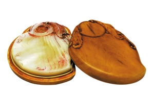 清代宫作砚——乾隆仿古螺钿仙桃砚。